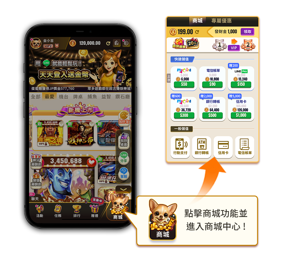 步驟二: 將開啟遊戲大廳,請點擊商城按鈕。